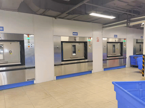 海狮目前为华西天府医院配置了洗衣龙、卫生隔离式洗涤脱水机、全自动烘干机、四工位展布机、自动熨平机&高速双面烫平机、四辊熨平机、全自动高速折叠机、堆码机、烘干龙、纯蒸汽发生器、脉动真空灭菌器、纯水制备系统等全套洗消设备。并确保所有设备严格按照 WST367-2012《医疗机构消毒技术规范》、WS/T508《医院医用织物洗涤消毒技术规范》等标准规范的要求,设立“两区三通道”(即洁净区、脏污区、工作人员通道、医用织物接收专用通道、医用织物发放专用通道),做到工作流程由污到洁,不交叉、不逆行。并在洁净区和污染区之间设置完全隔离屏障,实施负空气压阻断,使洁污两区之间实现双通道的全封闭式实质性隔断,空气不对流。